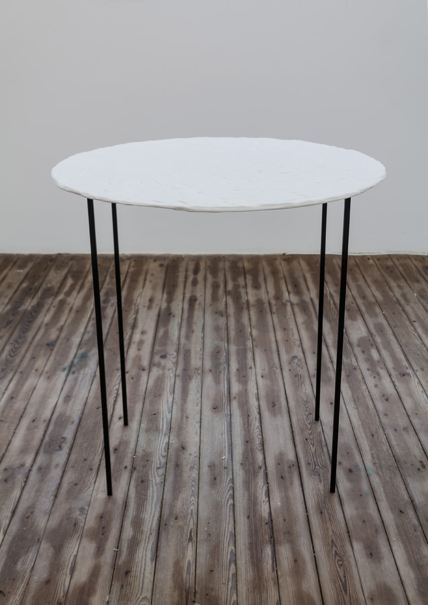 Untitled II, marble, reinforced plaster, steel, emulsion (in two parts), 97x97x103cm (plaster cast on steel base) and 149x100x3cm (carved marble plate), 2014 (detail)